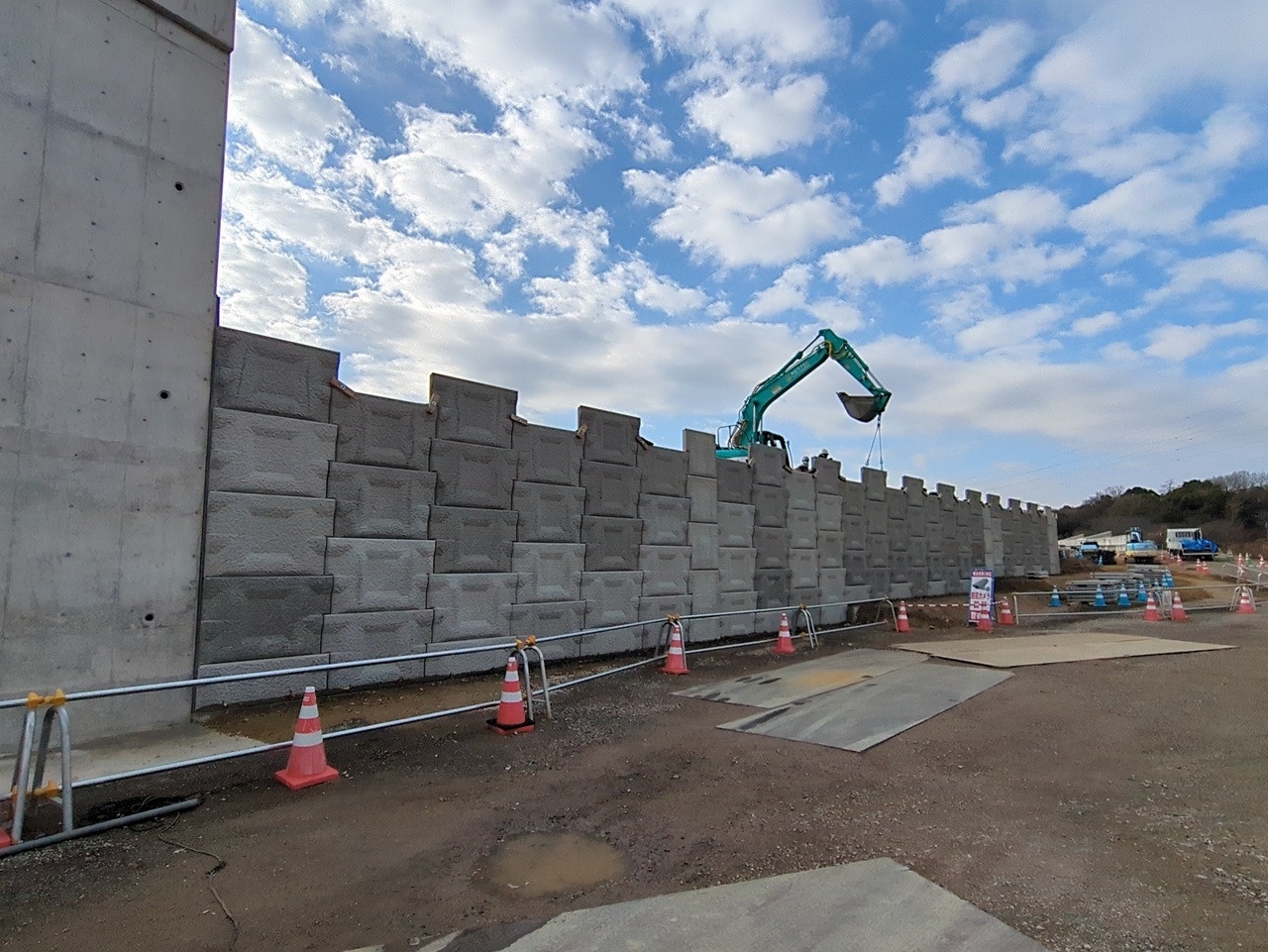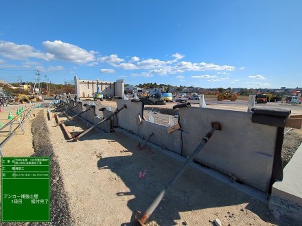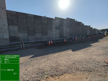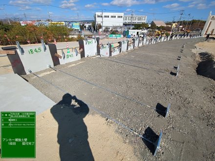 | 工事内容 | コンクリート擁壁工、深層混合処理工法、盛土または埋戻し工、 法面工、鉄筋工 |
