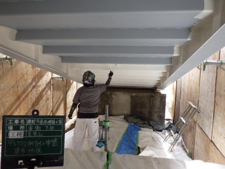 土木部門 2024.03.19公開 横断歩道橋修繕工事 塗装完了 工事概要 発注者 西尾市 工事名 横断歩道橋修繕工事 工事場所 西尾市新村町外1町地内 新村歩道橋 工事期間 令和5年6月〜令和6年2月 工事内容 道路付属施設工、維持修繕工、その他土木一式工 着手前 足場設置① 足場設置② 吊り足場設置 落下物防護板 設置 FRPシート 張り付け FRPシート 紫外線照射 FRPシート 完了 ケレン状況 ジンクリッチ塗布 夜間照明① 夜間照明② 中塗り塗装① 中塗り塗装② 塗装完了 側板設置 側板完了全景 前のエントリー 次のエントリー