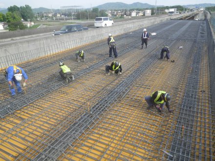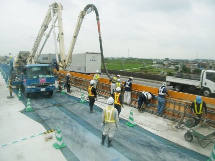 土木部門 橋梁工事 2019.11.08公開 平成26年度 23号岡崎BP中原高架橋床版工事 工事概要 発注者 国土交通省 中部地方整備局 名四国道事務所 工事名 平成26年度 23号岡崎BP中原高架橋床版工事 工事場所 愛知県西尾市 工事期間 平成27年2月〜平成27年10月 工事内容 床版工、伸縮装置工、地覆・壁高欄工、橋梁防護工